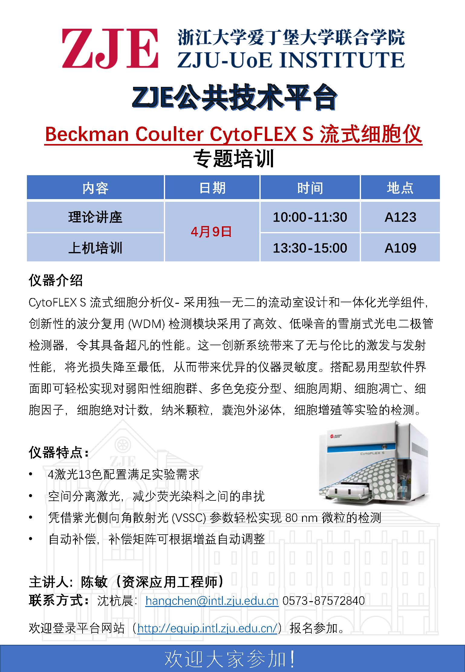 ZJE公共技术平台—Beckman Coulter CytoFLEX S 流式细胞仪专题培训